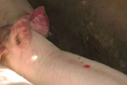 9、豬耳朵發(fā)紅發(fā)紫或壞死