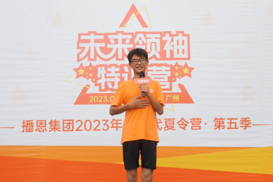 在學(xué)員發(fā)言環(huán)節(jié),本次訓(xùn)練營的優(yōu)秀學(xué)員代表李凱旭同學(xué)上臺發(fā)表感言。跟隨家長的足跡,李凱旭很高興能親自走進(jìn)播恩,切身感受播恩文化與工作環(huán)境。他期待著,在播二代夏令營“理想行動、擔(dān)當(dāng)大同”口號的鞭策下,努力成為更好的自己,探索未至之境,暢游科學(xué)海洋,立志領(lǐng)袖夢想。李凱旭分享了夏令營期間的點(diǎn)滴收獲,希望可以通過自己的努力考上更好的大學(xué),成為真正的播恩人。
