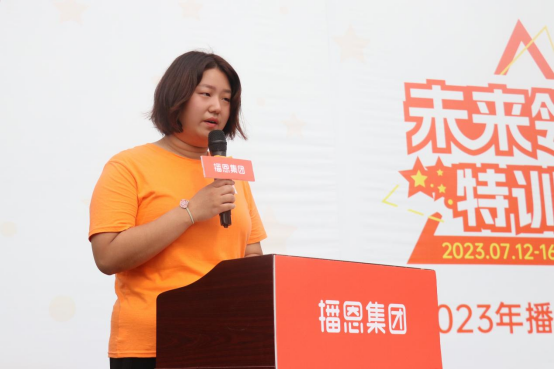 家長代表任飛女士對集團(tuán)本次舉辦的夏令營表示了最真誠的謝意,感謝公司為孩子們搭建的學(xué)習(xí)與交流的平臺。播二代夏令營給孩子們創(chuàng)造了一個專業(yè)學(xué)習(xí)、開闊視野和能力培養(yǎng)的機(jī)會,發(fā)現(xiàn)了孩子們無限的潛力和創(chuàng)造力,也點(diǎn)燃了孩子們學(xué)習(xí)與交友的熱情。她祝愿播二代夏令營越辦越好,也祝愿播恩發(fā)展長虹。