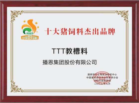 近日,在最新一季的“中國(guó)好豬料·第11季”評(píng)選活動(dòng)中,播恩集團(tuán)的拳頭產(chǎn)品——TTT教槽料成功獲得了“十大豬飼料杰出品牌”的榮譽(yù)稱號(hào)。這一榮譽(yù)不僅是對(duì)播恩集團(tuán)在豬飼料領(lǐng)域卓越表現(xiàn)的認(rèn)可,更是對(duì)播恩TTT教槽料品質(zhì)與技術(shù)的高度贊賞。