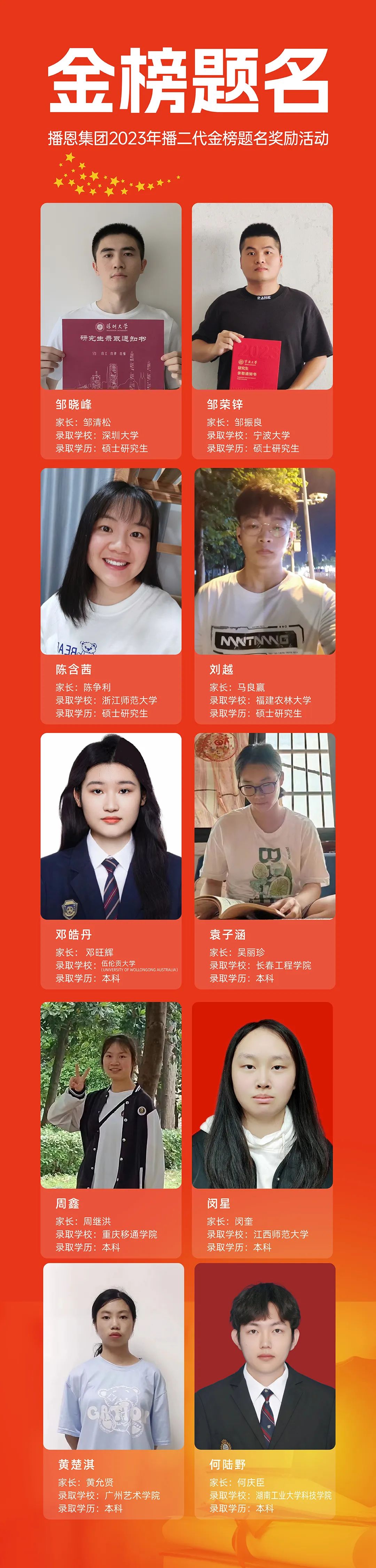 2023年集團(tuán)職工子女有10人考入高校,其中碩士4人,本科6人。為鼓勵(lì)更多的“播二代們”成為有理想、有行動(dòng)、有擔(dān)當(dāng)?shù)那嗄辏瑫r(shí)也給職工帶來(lái)滿滿的歸屬感與榮耀感,集團(tuán)除了現(xiàn)金獎(jiǎng)勵(lì)外,還送上了董事長(zhǎng)鄒新華先生的祝賀函、自著的《百煉成王—王陽(yáng)明》一書(shū)、精美禮品等。我們也對(duì)其中一些具有代表性的家長(zhǎng)進(jìn)行了采訪,下面是他們的一些采訪紀(jì)實(shí)。