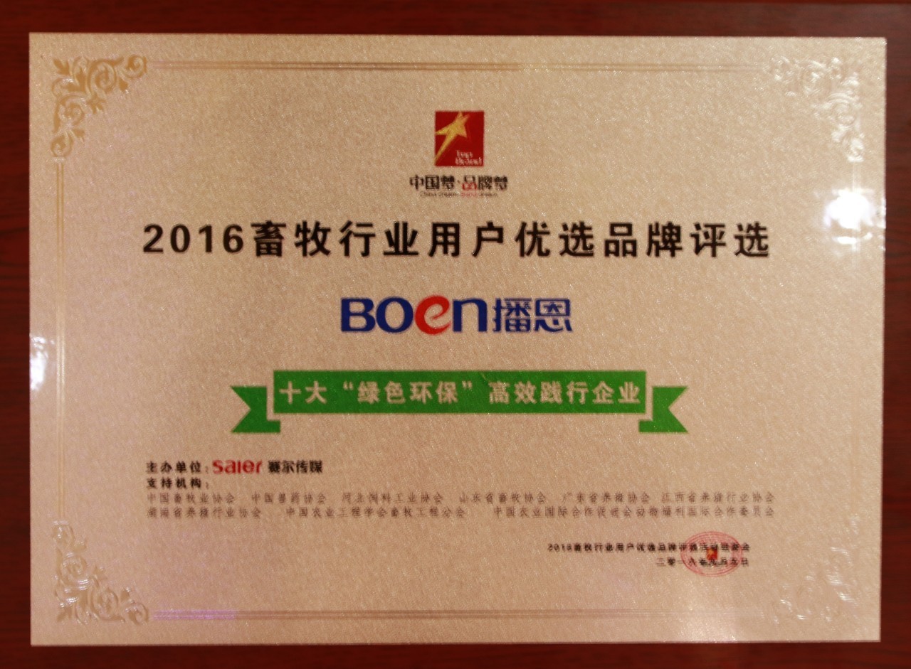 ▲播恩集團榮獲十大“綠色環(huán)?!备咝й`行企業(yè)