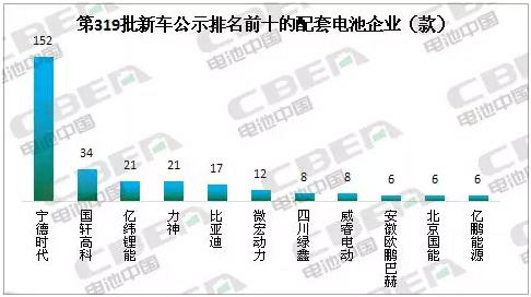 從提供配套的電池企業(yè)來看,此次新車公示有近50家電池企業(yè)為350款新能源車型提供配套。其中,寧德時代、國軒高科、億緯鋰能、力神、比亞迪、微宏動力等配套車型數(shù)量均在10款以上。